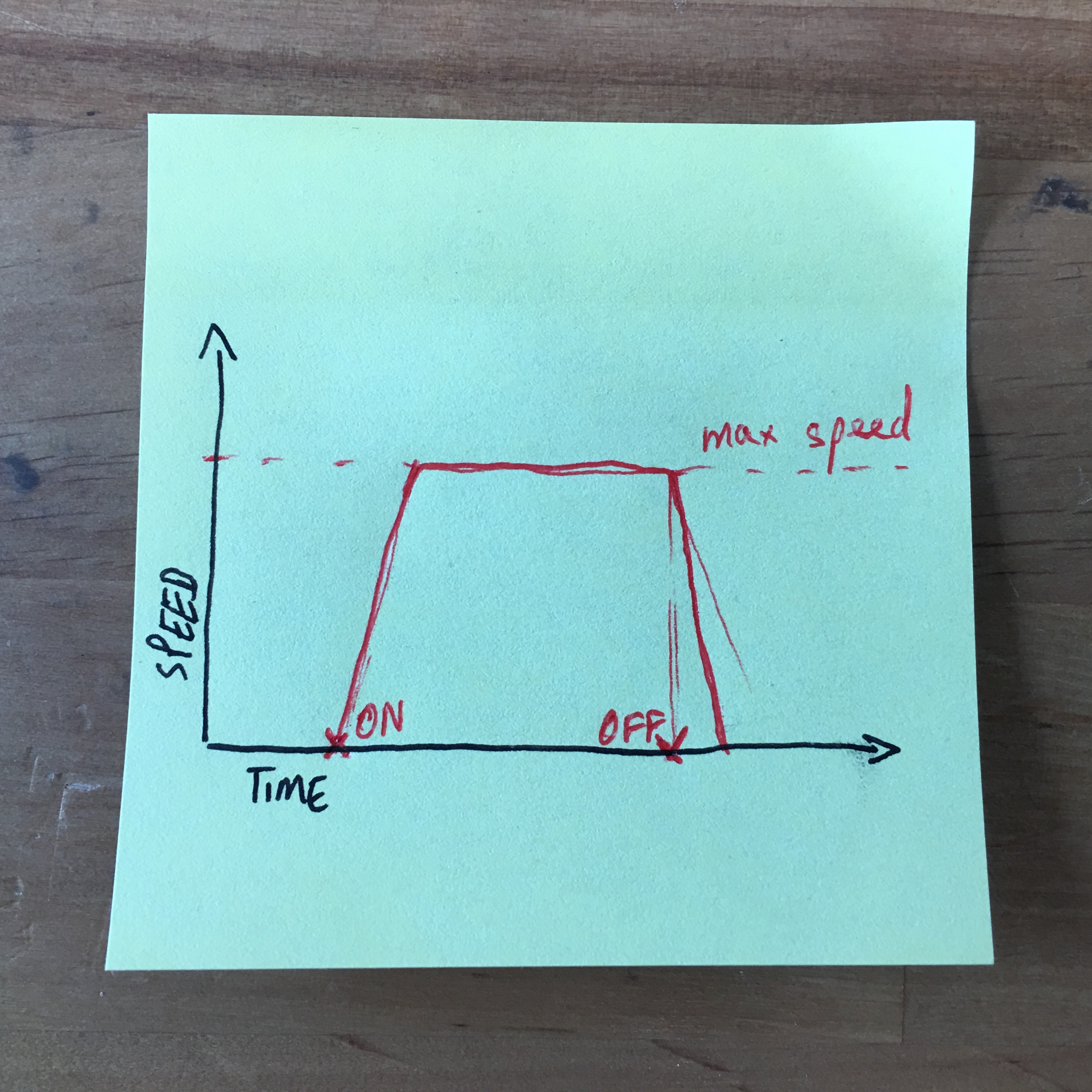 A common way for me would be like in the following example: You run your DC motor for a few seconds by turning it on and than abruptly stop it by turning it off again. Visualising this kind of motion in a graph could look like in the picture below: