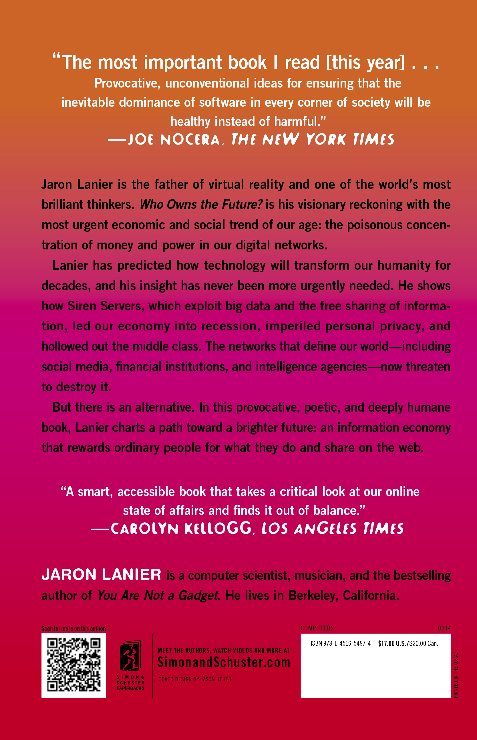 - Jaron Lanier, Who Owns the Future?, New York, 2013