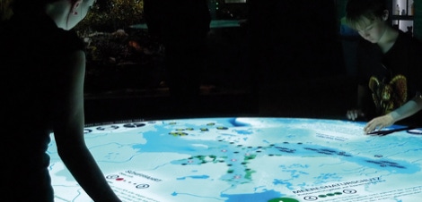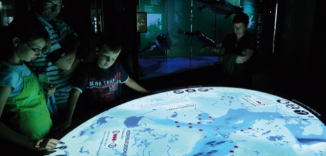 The Ozeanum was inaugurated in Stralsund in July 2008. It is the museum and aquarium of the underwater world of the northern seas built by the Deutsches Meeresmuseum (German Marine Museum). ART+COM has developed an interactive knowledge table about the Baltic Sea, which illustrates the influence of industry, tourism and agriculture in the sea. A documentation video can be found here.