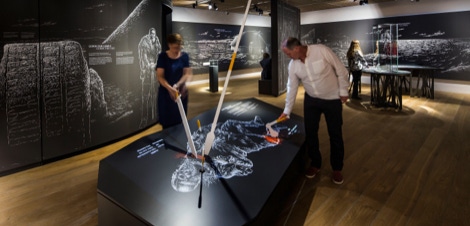 Archaeological artefacts and Viking legends are presented in a diverse and media-rich exhibition. Visitors can travel back to the earliest days of Jelling and immerse themselves in lives of the Vikings through ten different exhibition areas and forty media exhibits. Royal Jelling is not a traditional archaeological museum, but one that makes archaeology accessible as a continuous and active process. Visitors can travel back to the earliest days of Jelling and immerse themselves in lives of the Vikings through ten different exhibition areas and forty media exhibits. Visitors have a different experience in each room. Some elements are continually changing so that visitors can experience new atmospheres and stories with every visit.