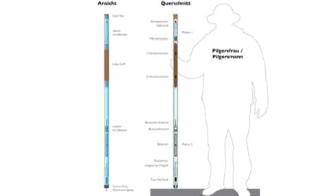 The goal of this project was to translate the central aspects and values of the pilgrimage into a digital object – a new interpretation of the traditional walking-cane: The GɇoCane. This new cane shows various references to the historic and modern pilgrimage, as well as historic and modern forms of navigation. By using the GɇoCane, the user receives a new understanding of the historic identity of pilgrimage.