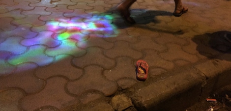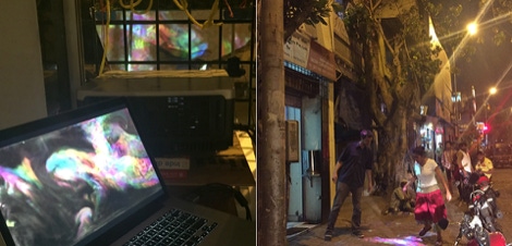 A temporary installation as homage to Holi – the indian Festival of Colours. A festival in which the participants chase and colour each other with colourful dry powder and coloured water. The frolic and fight with colours occurs in the streets and spreads over the whole city. Holi Hé is a reactive floor projection that refers to the trace of colours people leave behind during this event. The set-up took place in Dharavi (Mumbai, India).