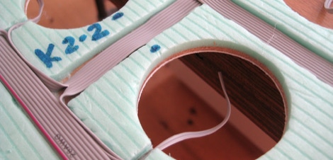 The key components of this auditive media facade are the sound pixels, or Soxels, a scaleable array of speakers, and a feed-in point for streaming an endless number of audio channels to provide each speaker with an individual sound stream. DSP technology opens the spectrum from processing natural sounds, transforming them, or generating complex artificial sounds. The developed software is able to mix all integrated soundlayers on any speaker anywhere on the wall and do individual sound manipulation.