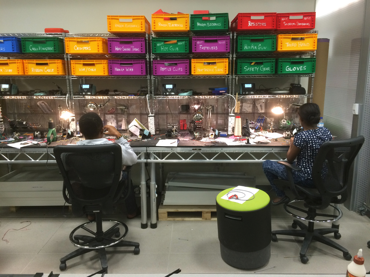 Within the lab, tools and resources are available to transform ideas into prototypes. Instead of primarily focusing on technical training and access to equipment, emphasis is placed on idea generation, refinement of concepts, and selection of effective strategies to realize worthwhile goals. The next generation of engineers is given the space and time needed to develop the poise and confidence to be prepared to initiate and deliver socially responsible and culturally relevant responses to the most challenging design prompts.