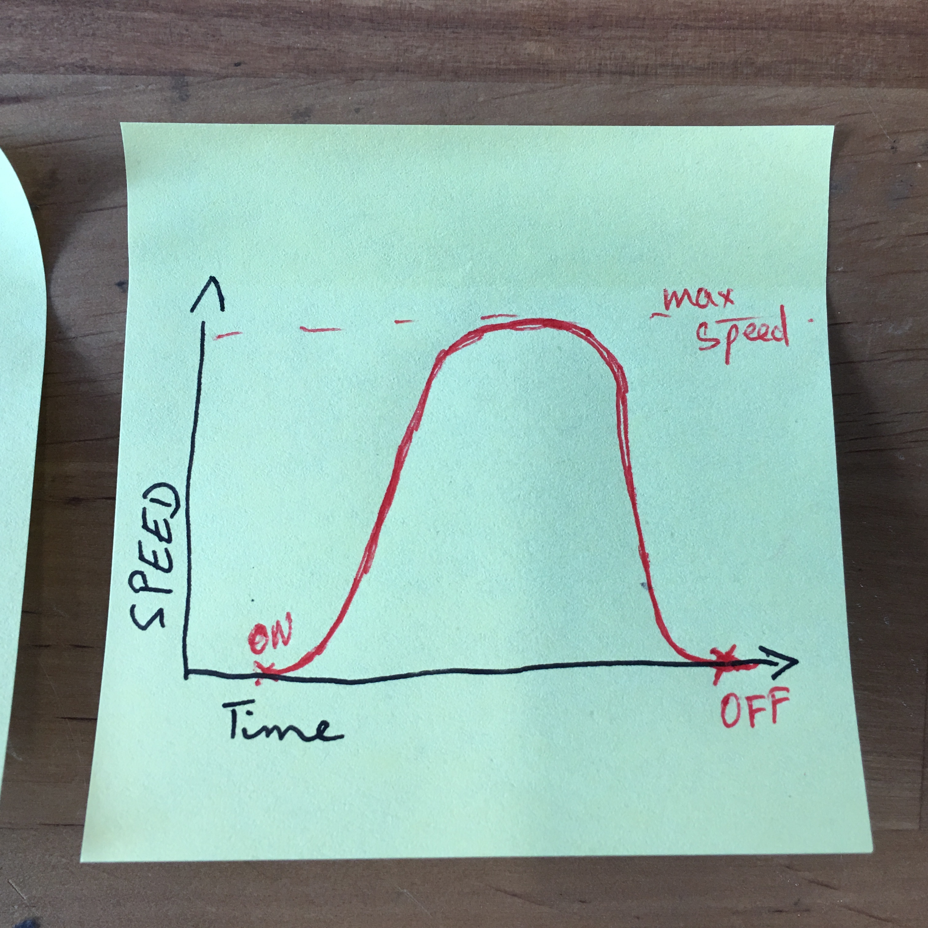 A common way for me would be like in the following example: You run your DC motor for a few seconds by turning it on and than abruptly stop it by turning it off again. Visualising this kind of motion in a graph could look like in the picture below: