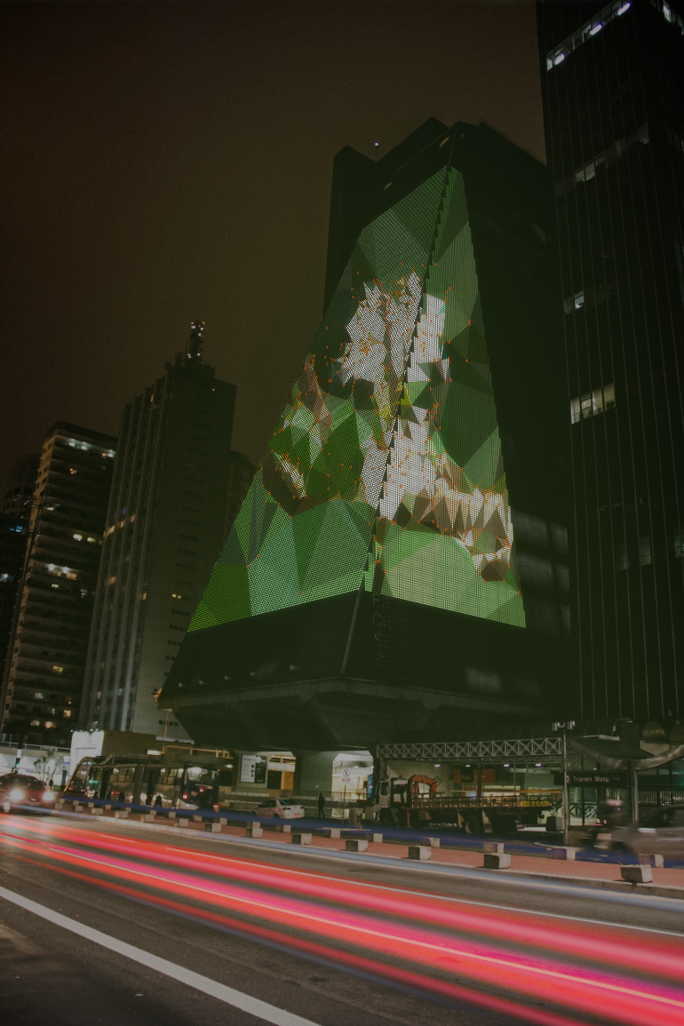 As the expression of the body through dance is an important element to Brazilian culture, this design centers on the importance of not losing the freedom to move one’s body. The building encloses the dancer who must be able to move within the confines of the structure, which serves to hold the dancer captive as well as open up the possibilities of how minute movements have a profound effect on the body. Previously filmed footage is mapped to the façade and shows the dancer from three different perspectives performing simple movements within a narrative. The objective of the design is to remind the passerby not to fall into the confines of the everyday work life and to reignite the body.