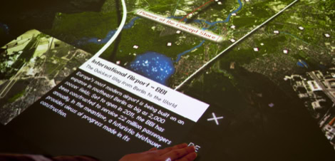 Berlin-shaped, four-square-metre interactive media-table that displays information on history, interesting places and cultural sites.