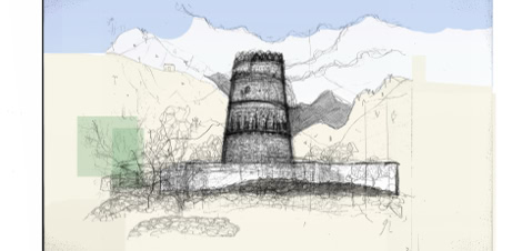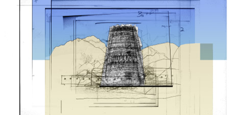 Hand-drawings are multiplied over each other to create merging visuals of a heritage site