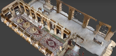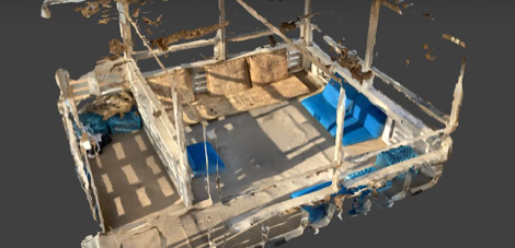 Beside general research on the topic, the team documented multiple mejles through detailed series of photographs, videos, 3D-scans and interviews. In the below example the majlis Ghorfat Umm Al Sheif (Dubai, 1955) can be seen. Surrounded by lush palm trees this place served
