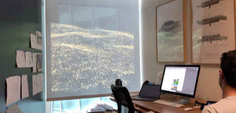Gravel is the simulation of sand a particle system using openFrameworks. The project team developed software sketches in several iterations and tested those as back projection onto the shading of Felix’s office.