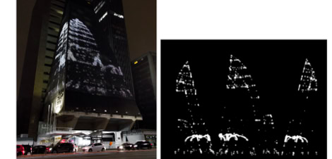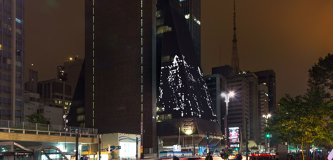 While a static façade is primarily a surface looking outwards to the world, protecting the contents of the architectural structure, the media façade brings a new dynamic layer of digital information to its surface. “Crossroads” proposes to use the volume of the FIESP building as a large section scanner. This gives passersby a new transformative vantage point to remote locations. A series of comparative inquiries into the scale and structure of architectural heritage is a starting point for creation of visual forms. Various levels of abstraction connect data sets and give new understanding to the role and importance of these places.