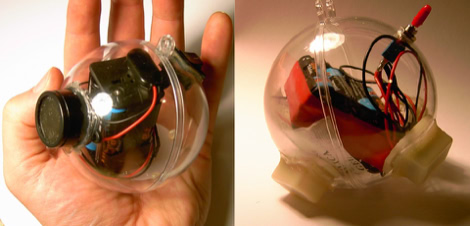 Each one a handmade design-object for interactive transmission. An integrated sound-modul makes it possible to record any given sound and then activate it through a motion-detector. As a Non-Visual Graffiti, with its origin in streetart, Soundbombs give the possibility to tag a place in an accoustic form: a welcoming greeting at the entrance, or a warning of a bad restaurant. Each owner can leave a personal message anywhere and at any time. Soundbombs can whistle, laugh, belch or recite a poem. One can apply for the purchase of a Soundbomb – only those who deserve a one, get one!