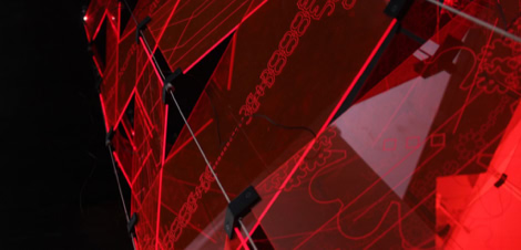 The concept for the Sharjah Octagon was developed by Felix Hardmood Beck with the aim to realize a semi-permanent installation during a workshop held by Felix Hardmood Beck, Assistent Prof. Zlatan Filipovic and Assistant Professor Paul Bantey at the College of Architecture, Art and Design (American University of Sharjah, United Arab Emirates). During the five-day long workshop the students had to work as groups and/or as individuals on several tasks: concept, graphic-design, laser-cutting, electronics and programming (Arduino), installation on site. Eight modules, each consisting out of eight acrylic glass panels, connecting elements (3d printed angles) and the hanging system were given. The students developed and realized the following concept: The overall theme of the octagonal chandelier was inspired by eight of the most common plants mentioned in the Holy Qur’an. Each horizontal tier is unique to the plant that was chosen for it. Formal qualities that were shared between the Arabic letterforms and the plant’s physical shape were selected to blend together. These qualities were then overlapped, rotated, and flipped in order to create a pattern that radiates throughout the whole tier. The tiers were assembled beneath each other by alternating between organic and angular plant patterns. From top to bottom: Fig, olive, jasmine, pomegranate, grape, basil flower, henna and date.