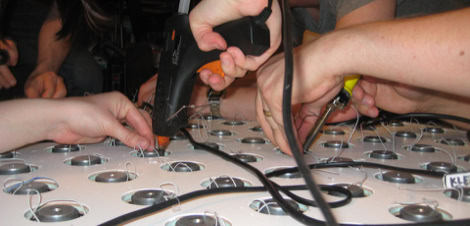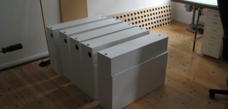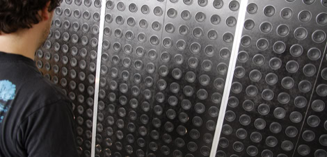 The key components of this auditive media facade are the sound pixels, or Soxels, a scaleable array of speakers, and a feed-in point for streaming an endless number of audio channels to provide each speaker with an individual sound stream. DSP technology opens the spectrum from processing natural sounds, transforming them, or generating complex artificial sounds. The developed software is able to mix all integrated soundlayers on any speaker anywhere on the wall and do individual sound manipulation.
