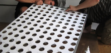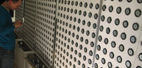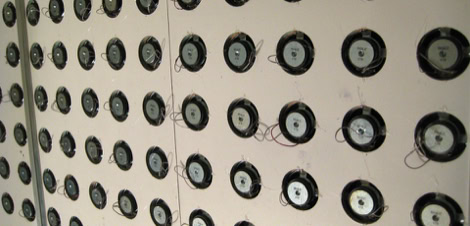 The Prototype of a 5m speaker wall feeding in live pictures to control the position of sound output.