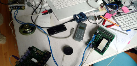 The Soxels project was developed and prototyped with a matrix of 1000 speakers by Simon Schiessl and Felix Hardmood Beck.